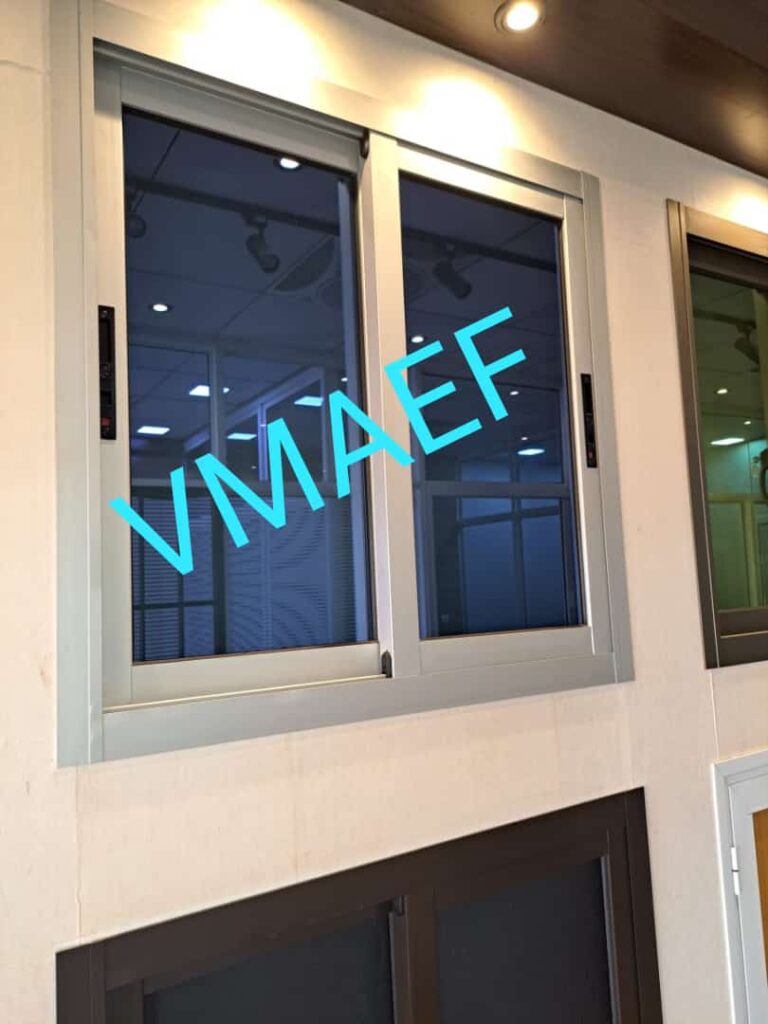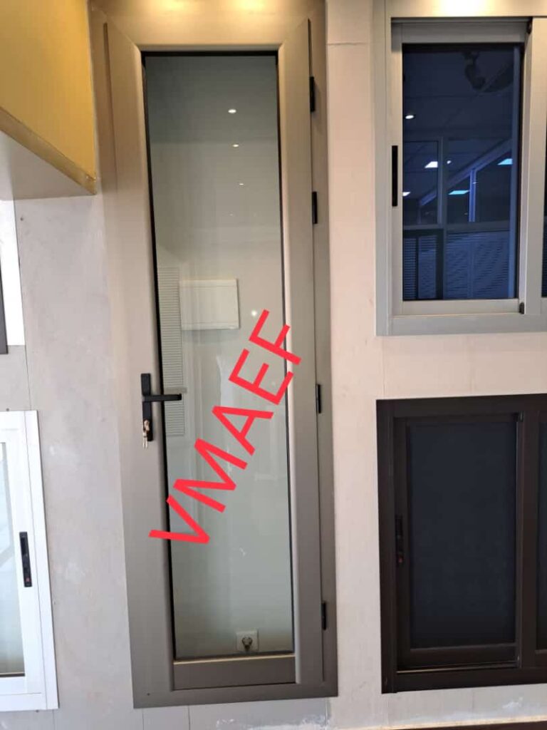 LES CONFECTIONS DE VMAEF Bibata Sanou0 commentNouvelles Porte Alu champagne O.F (Ouvrante à la française ) battante vitrée en verre transparente . Toujours au VMAEF Fenêtre Alu Coulissante vitrée en bleu reflective