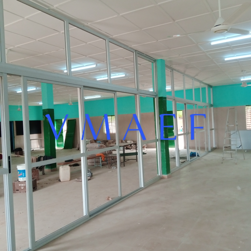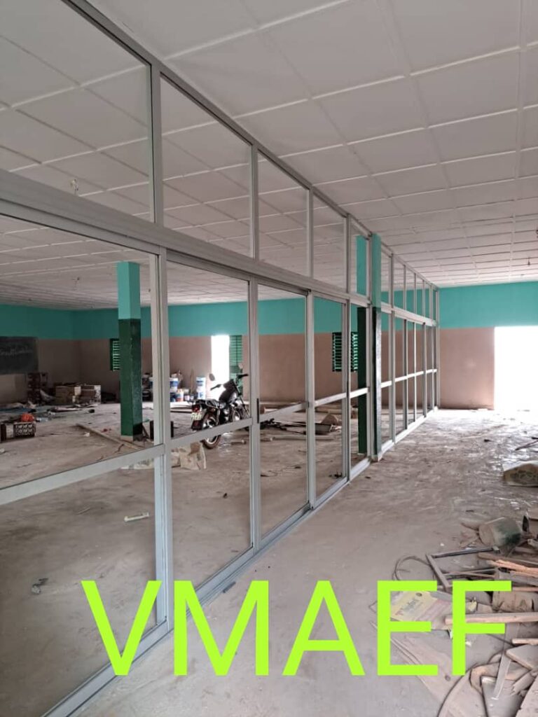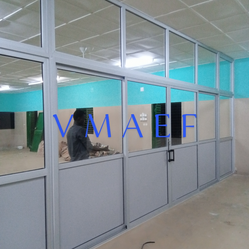 Quelques réalisations de VMAEF Bibata Sanou0 commentNouvelles Cloisonnement en ALU Argent vitré+ contre-plaqué muni des portes coulissante